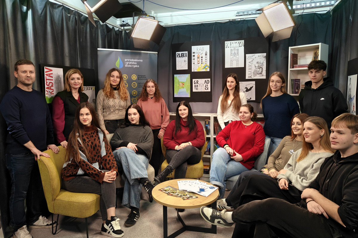 U sklopu nastave medijske grupe, trinaest učenika Prirodoslovno-grafičke škole Rijeka kreiralo je cjelovit programski sadržaj spreman za emitiranje u profesionalnom eteru. Kroz ovaj proces, maturanti su prošli put od ideje do realizacije, preuzimajući uloge koje ih čekaju u budućim karijerama.