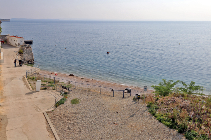 stadiona Kantrida. Uz prilaz u more nalazi se tuš sa slavinom i gumenim
