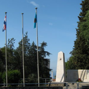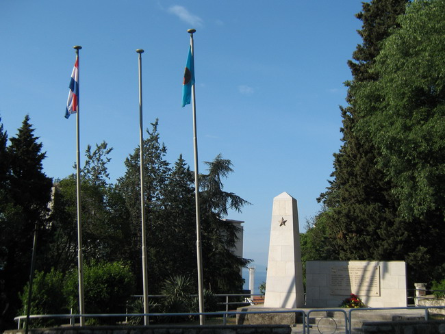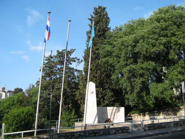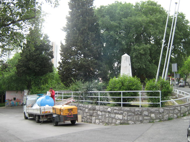 Na jarbole su istaknute zastave Republike Hrvatske i Grada Rijeke.