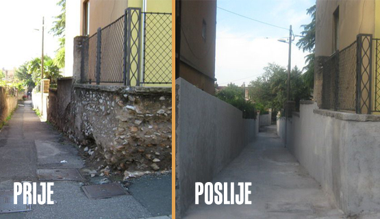 Ovo je prva faza uređenja zida, a nastavak na sanaciji kod ulaza u kbr. 21/1 planira se u toku ljetnih mjeseci.