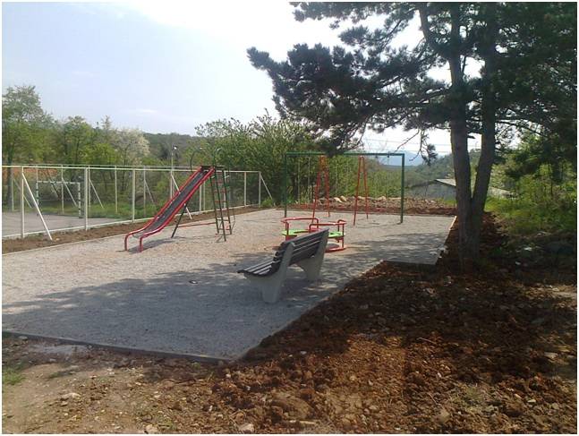 Po potrebi je postavljena i ograda, nakon čega su ugrađene sprave za igru djece u dobi od 3 – 5 godina, klupe i parkovne košarice. Uređena dječja igrališta su površine cca 100m2, od sprava su postavljeni vrtuljci, tobogani i ljuljačke.