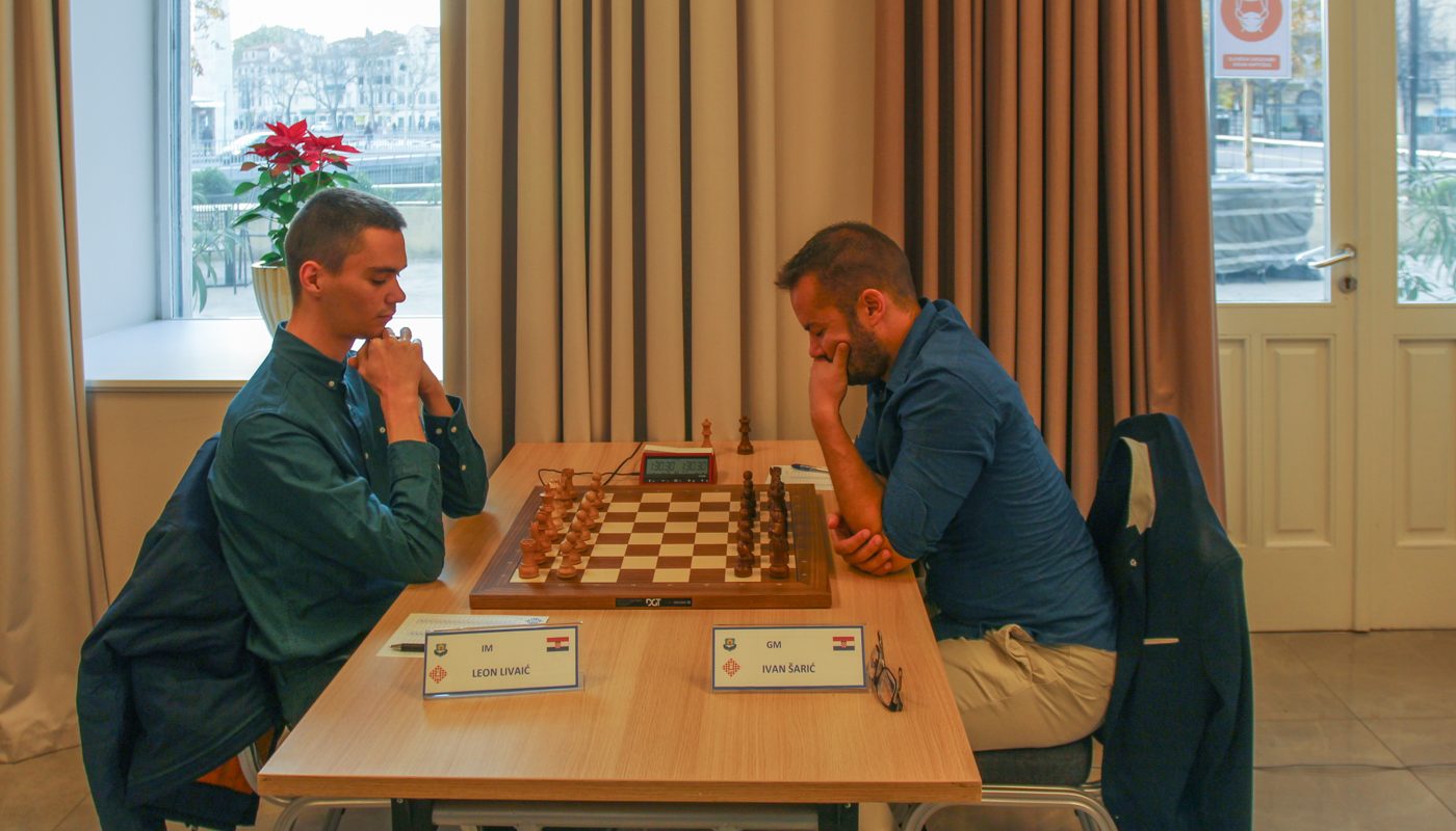 Već u prvom kolu dogodile su se dvije prave senzacije, koje su sasvim poremetile “normalan” tijek događaja. Zagrebački internacionalac Leon Livaić na briljantan je način nadigrao najvećeg favorita Ivana Šarića, iako je izmjenom dama vrlo rano prešao u završnicu. Najprije je suparniku razbio pješačku strukturu, a zatim je lijepom pozicijskom žrtvom pješaka zahvatio jaku inicijativu.