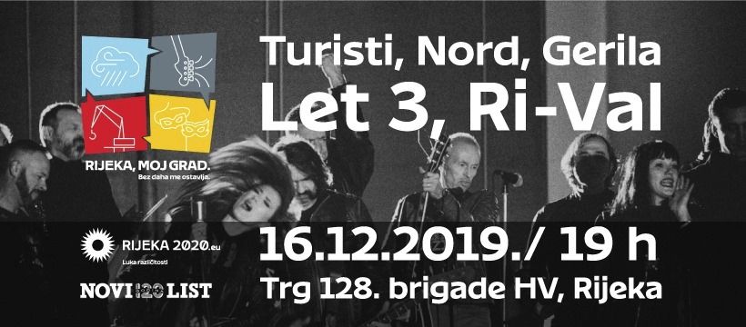 Na Trgu 128. brigade HV-a, u ponedjeljak, 16. prosinca, s početkom u 19 sati Rijeka – Europska prijestolnica kulture i Novi list organiziraju glazbeno druženje s građanima, koncert Rijeka, moj grad na kojem će nastupiti riječki super band Ri-Val, Let 3, Turisti,