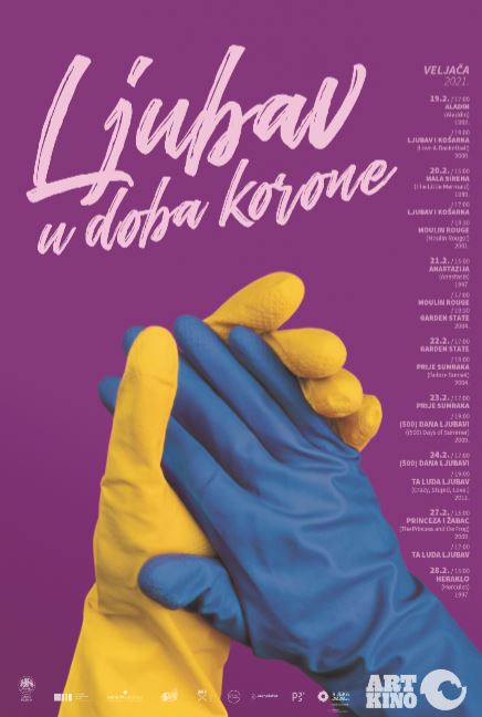 Mjere opreza nastavljaju se i u veljači, a isti je slučaj i s uspješnim siječanjskim programom: Ljubav u doba korone. Bilo bi, zar ne, sasvim neodgovorno mjesecu zaljubljenih okrenuti leđa. Koncept je stoga isti: raniji termin predviđen je za mlađe uzraste, a kasniji za ponešto starije. Dio za mlađu publiku donosi pet animiranih romansi novijeg datuma: Aladin (1992.), Mala sirena (1989.), Anastazija (1997.), Princeza i žabac (2009.) i Heraklo (1997.).