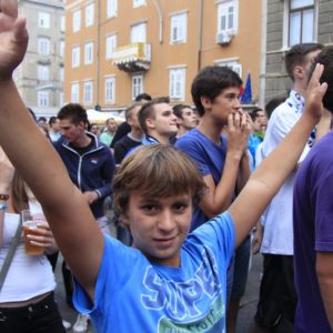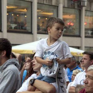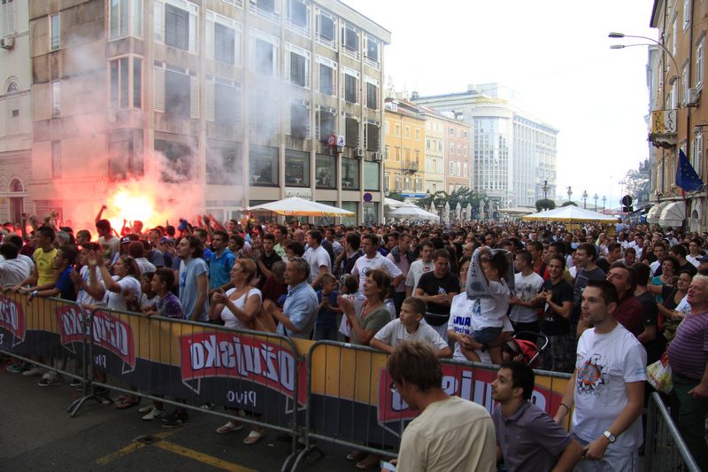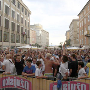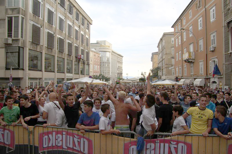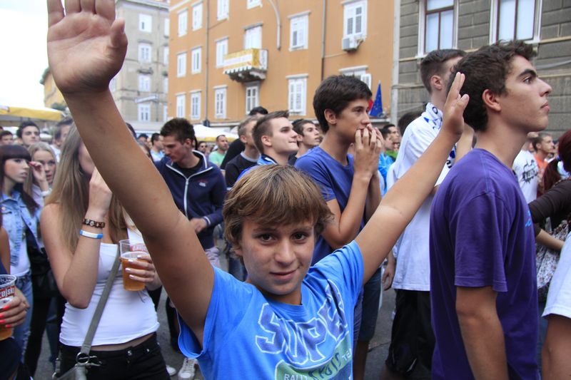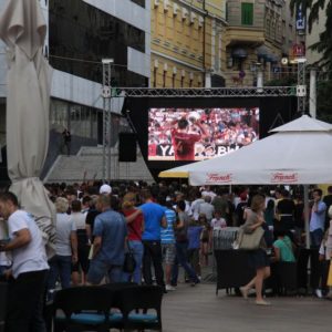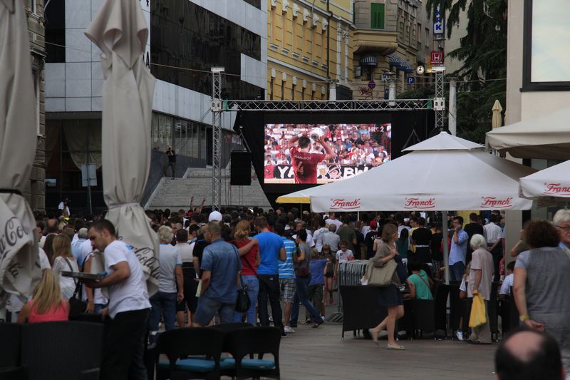 okupljena gomila na istom mjestu preko video zida izravno pratila utakmicu iz
