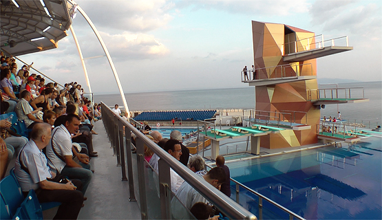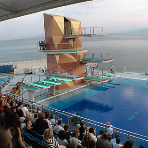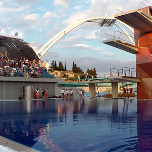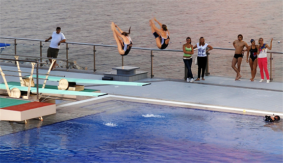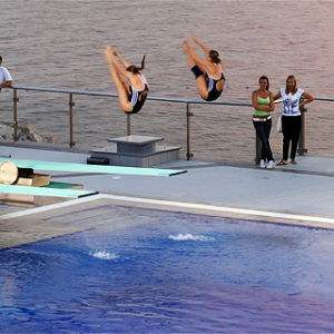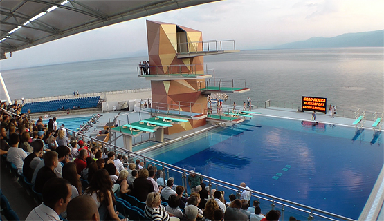 natkriveno, a ukupno ima 378 stalnih mjesta za sjedenje. Osim za skokove u vodu, bazen je namijenjen i drugim vodenim disciplinama kao što su plivanje, sinkronizirano plivanje, vaterpolo te obuci ronioca.