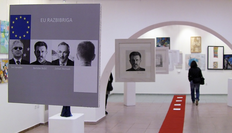 galerijskom zidu nalazi se Božićev rad, bijele boje. Ali, odmah ispod njega