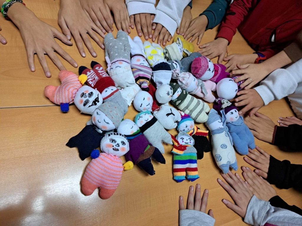 Riječ je o djeci, članovima Školskog volonterskog kluba „Teslići volontiraju“, koja u okviru predmeta Građanski odgoj i obrazovanje obrađuju temu volontiranja te korisnicima programa „Školsko poslijepodne samo za mene“. Pod vodstvom kreativne Emine Bašić, volonterke HKD-a i Matice umirovljenika, učenici su rasparenim čarapicama udahnuli novi život pretvorivši ih u vesele lutkice.