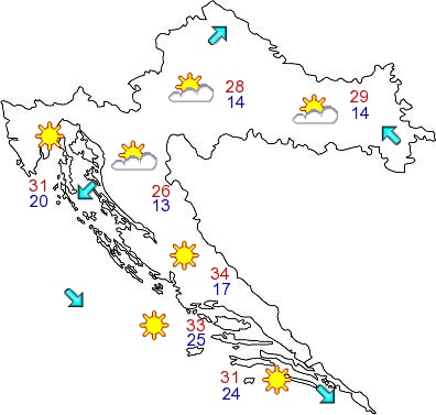 Najviša temperatura između 25 i 30, na Jadranu od 30 do 35°C.