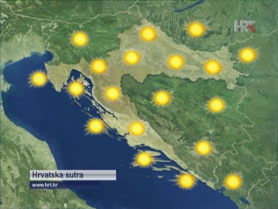 Promjenjivo oblačno sa sunčanim razdobljima i ponegdje malo kiše, a u Slavoniji i Baranji će veći dio dana prevladavati sunčano. Pretežno oblačno povremeno s kišom, pljuskovima i grmljavinom bit će prijepodne u Dalmaciji, a novo jače naoblačenje s kišom, očekuje se navečer i u noći na sjevernom Jadranu, u Gorskome kotaru, Lici i sjeverozapadnim krajevima.