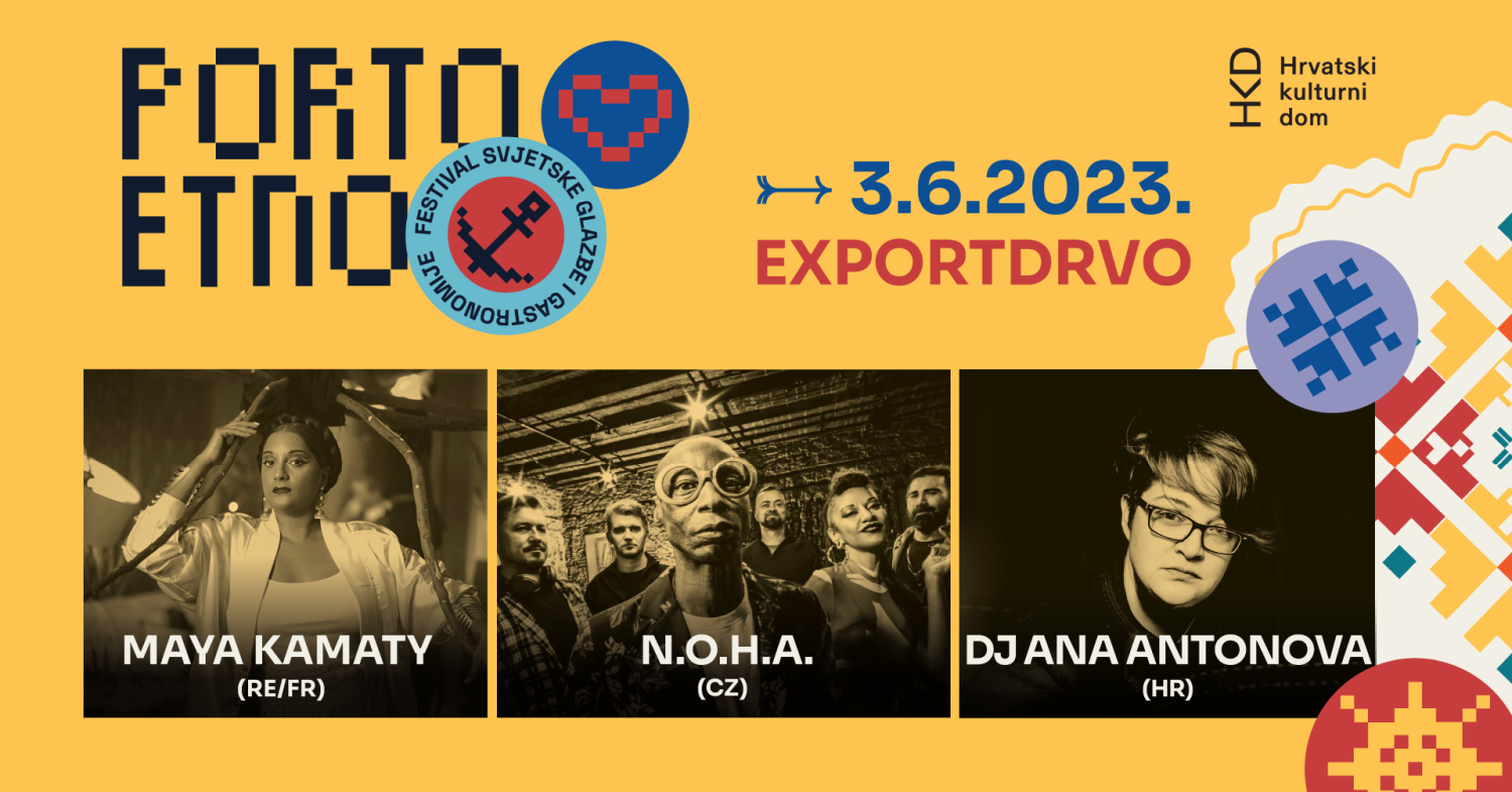 Ovogodišnji Porto Etno festival u subotu 3. lipnja zatvara fuzija različitih glazbenih utjecaja i žanrova, a publiku očekuje uzbudljivo glazbeno putovanje svijetom koje će rasplesati i najsramežljivije – dolazi nam impresivna Maya Kamaty s francuskog otoka La Réunion, energični češki bend s članovima iz raznih kutaka planete N.O.H.A. (Noise of Human Art), a za kraj festivala i ples do ranih jutarnjih sati zadužena je poznata krčka DJ-ica Ana Antonova.
