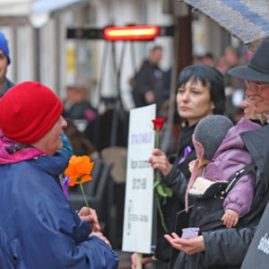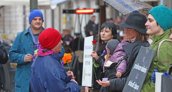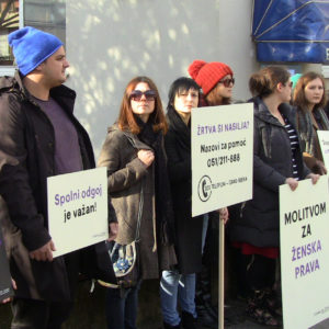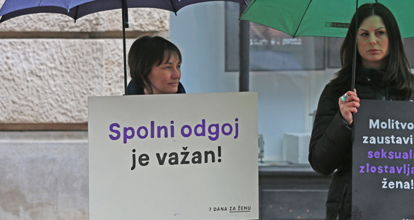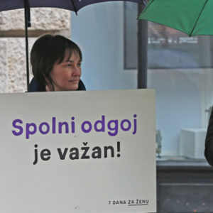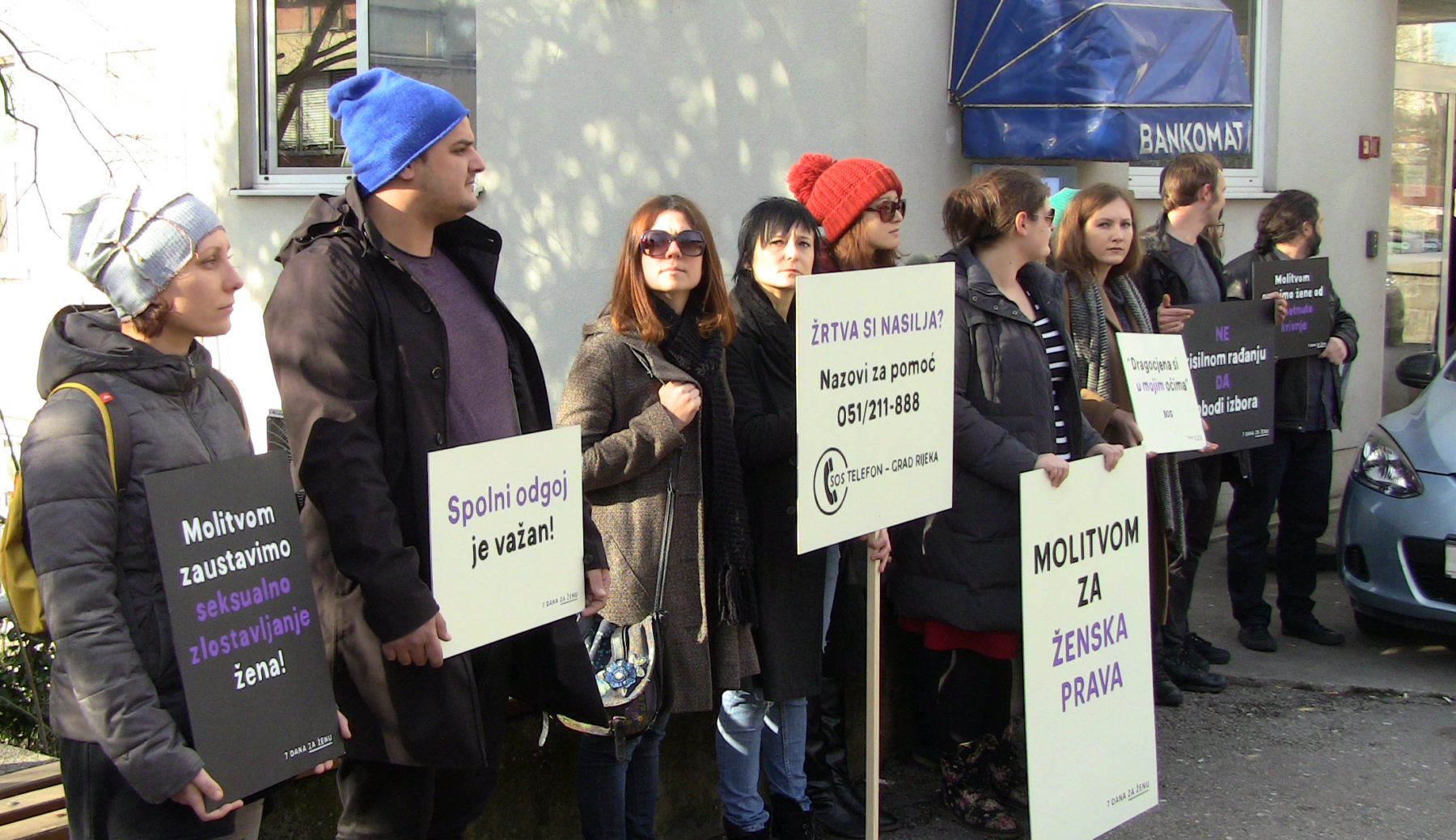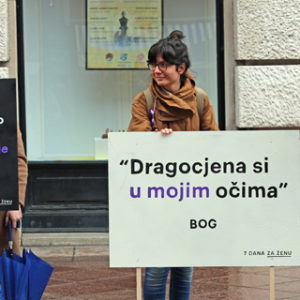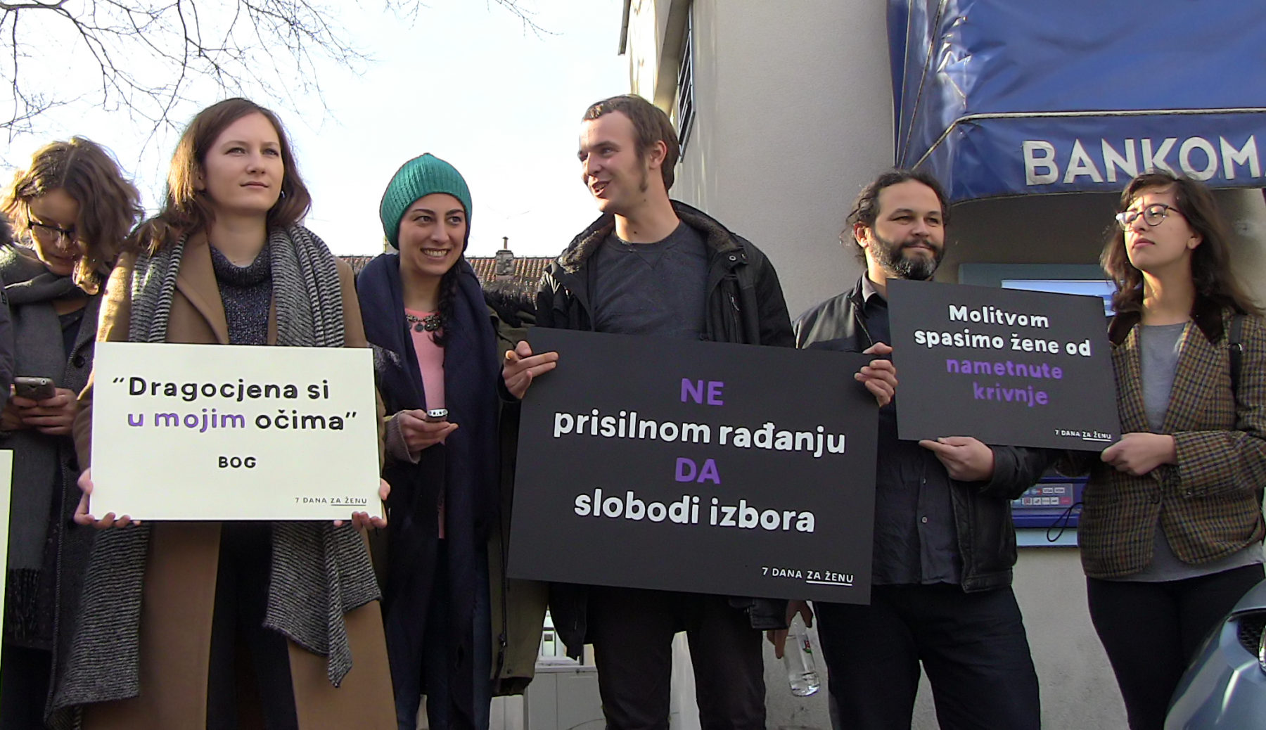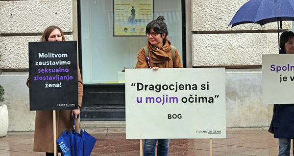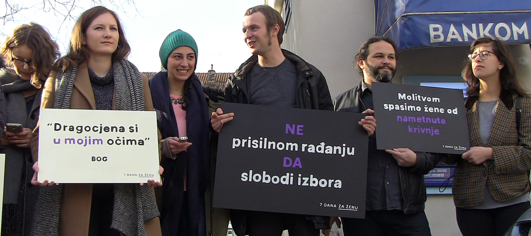 ženu” mirno su stajali sa svojim transparentima. Ti isti transparenti