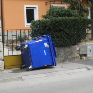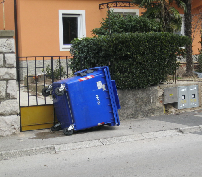 Plavi “papirnati” čak je prešao cestu, da bi “pokucao” na nečiji ulaz. A drugi se zaustavio na portunu (on je otklizao sa svog mjesta).