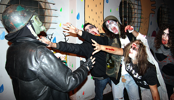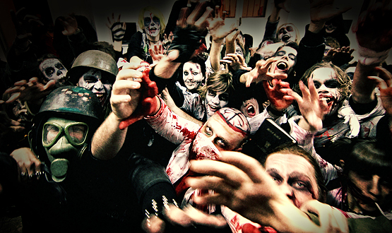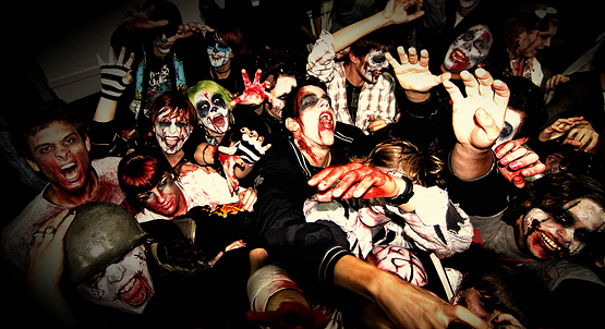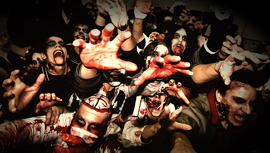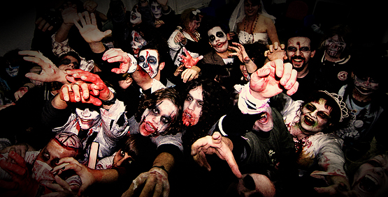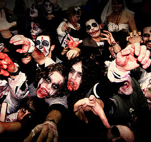 Zabava znana kao Zombie Walk je vrlo popularan vid okupljanja u svijetu, gdje se organizirani skup ljudi maskiran u zombije po uzoru na horror filmove, šepavim korakom šeta centrom grada.